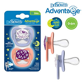 [ PA12003-INTL ] Bộ 2 ty ngậm Dr.Brown's Advantage đầu tròn, phát sáng dạ quang ( 0-6m )