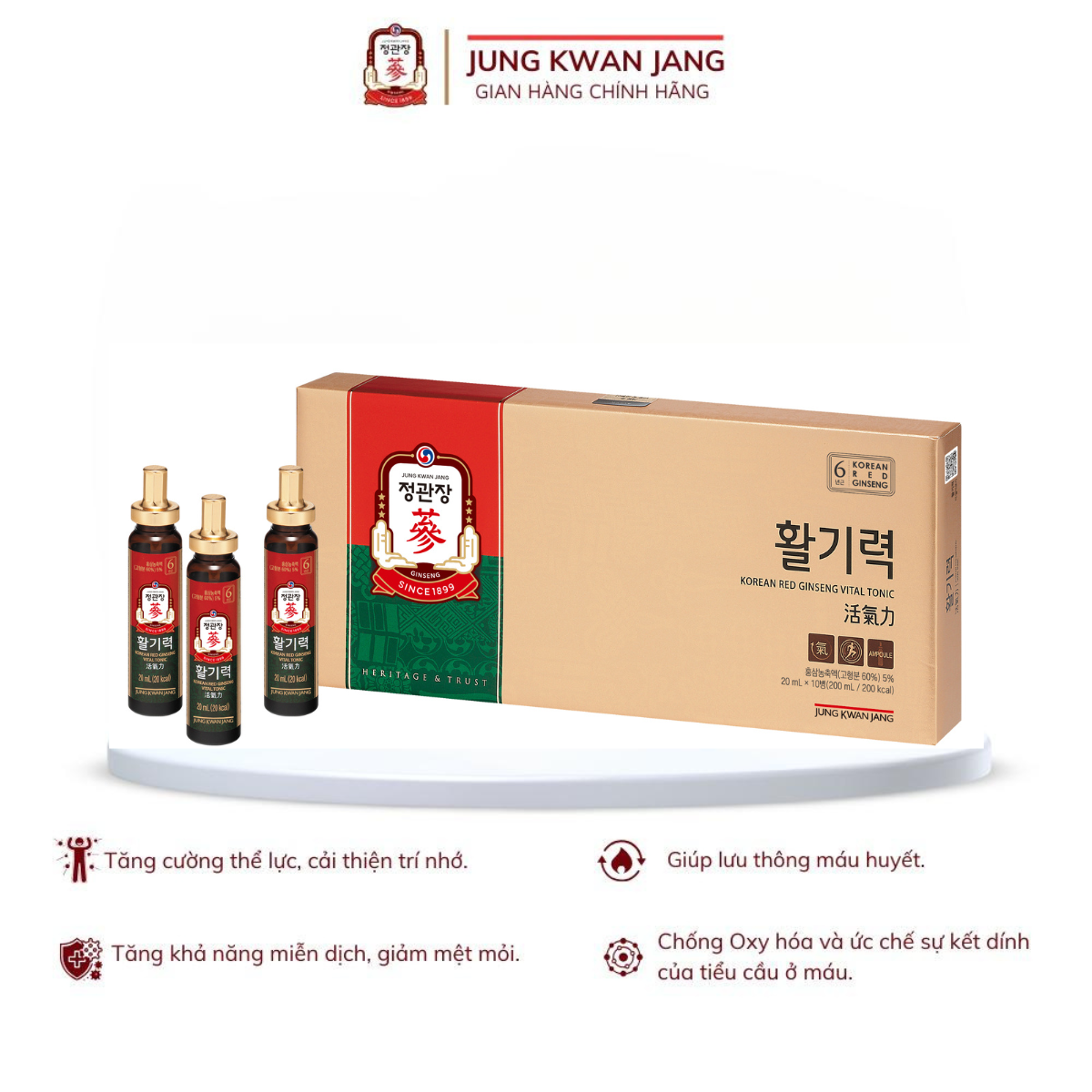 - Tên sản phẩm: Nước Hồng Sâm Hàn Quốc Cao Cấp KGC Jung Kwan Jang Vital Tonic (Hwal Gi Ruk) (20ml x 10 Ống)