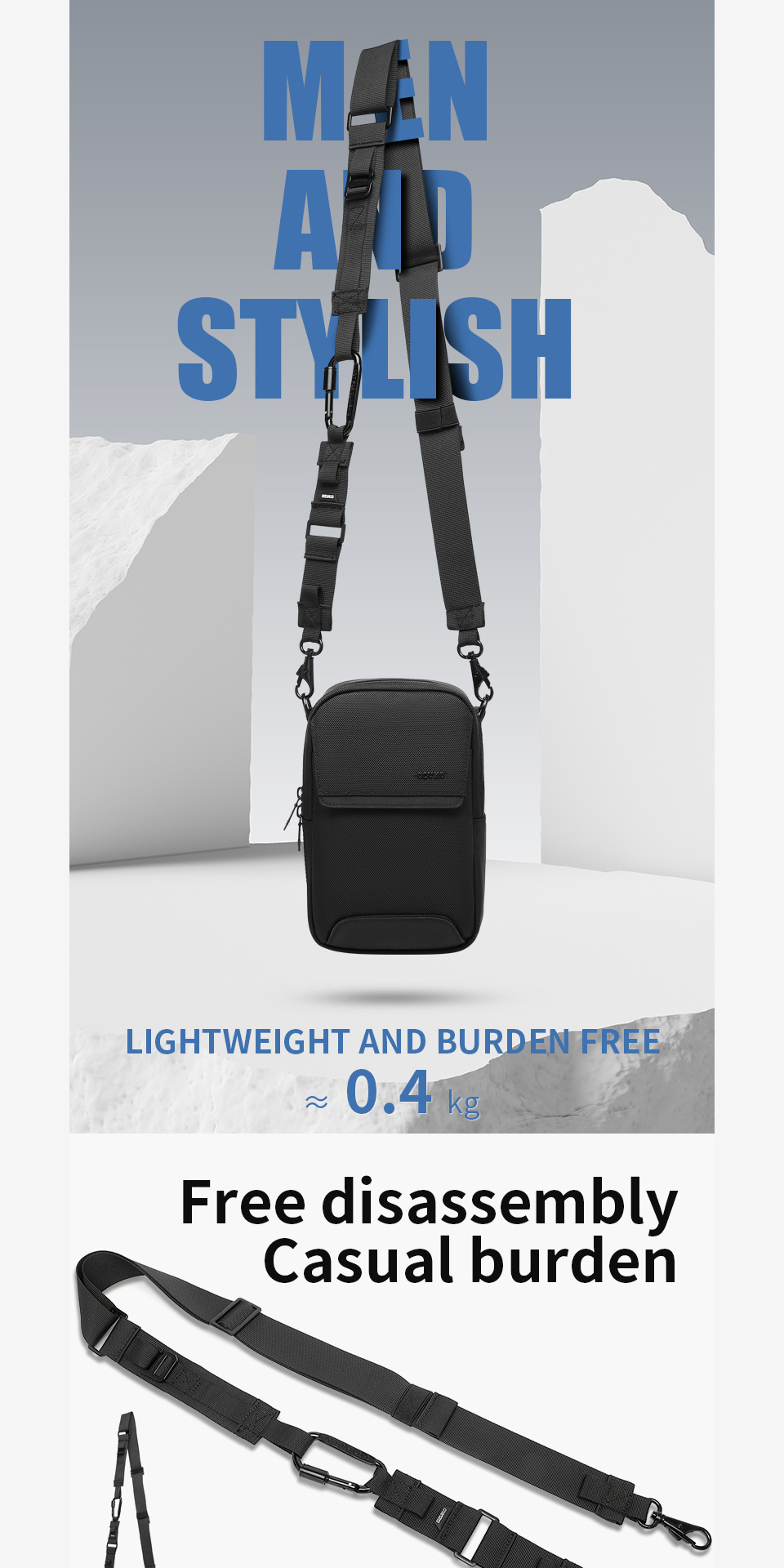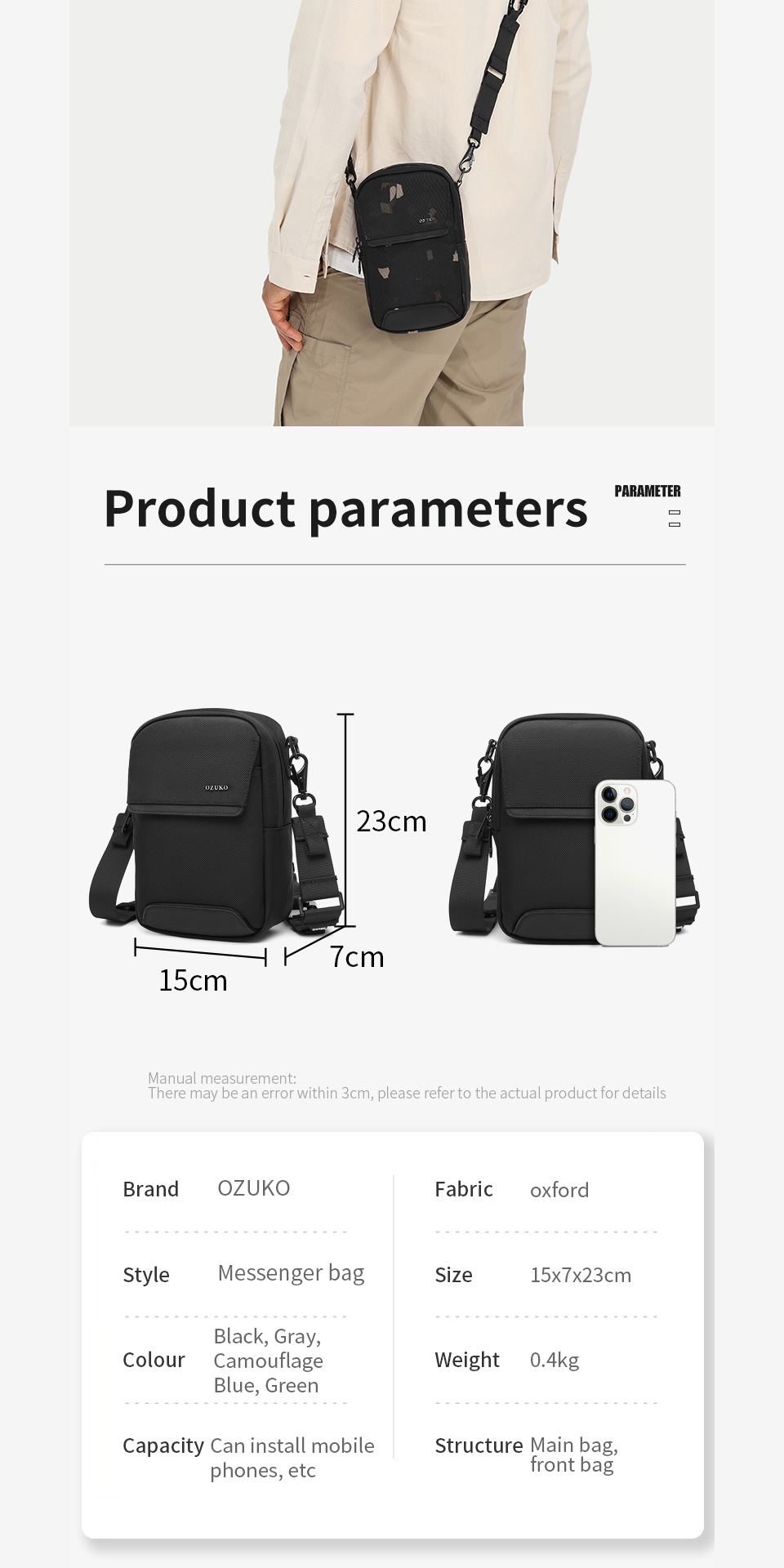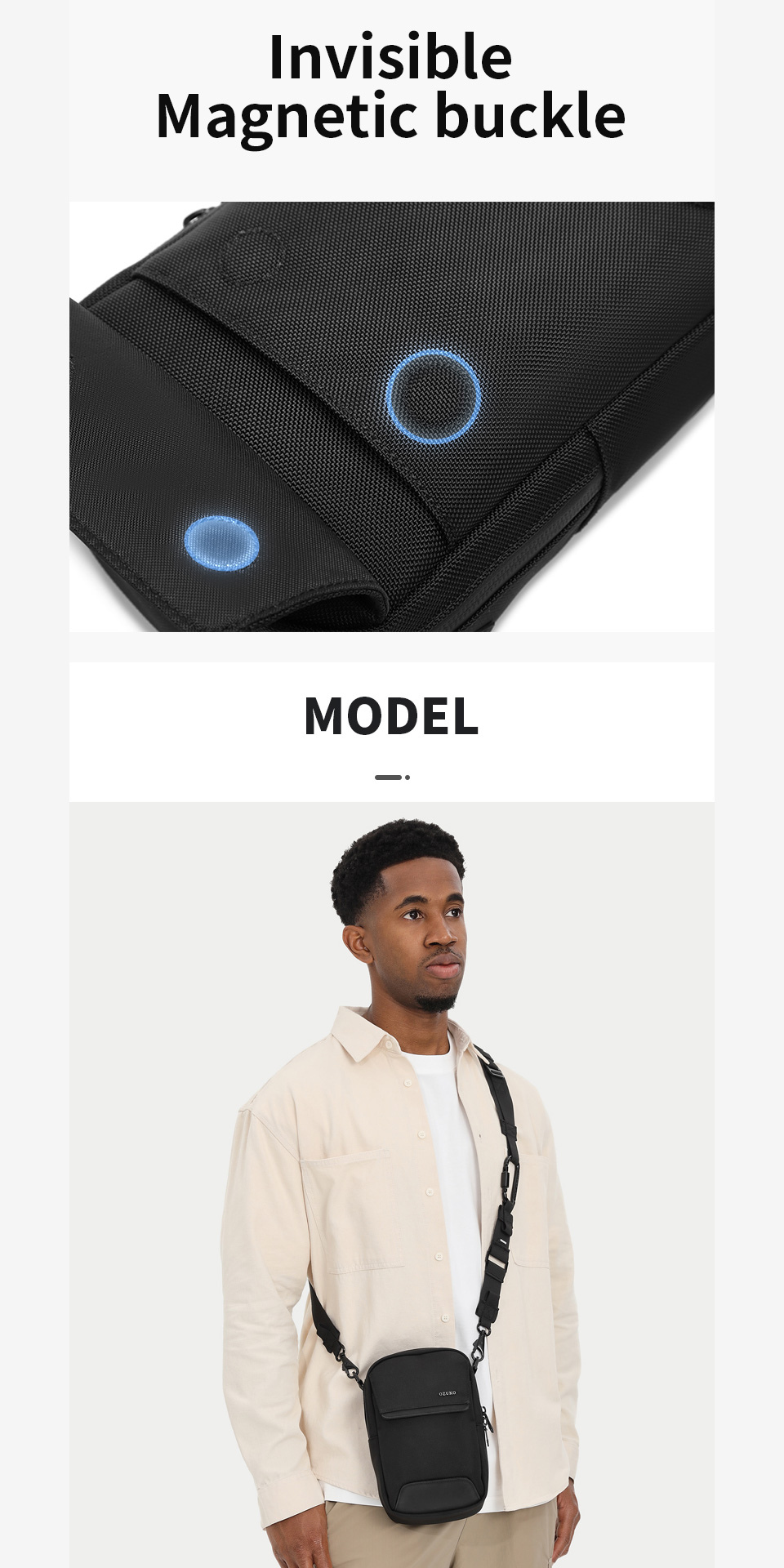 Ozuko Túi Đeo Vai Nhỏ Thời Trang Nam Chống Thấm Nước Ánh Sáng Ngoài Trời Nhiều Lớp Sling Túi Đeo Ngang