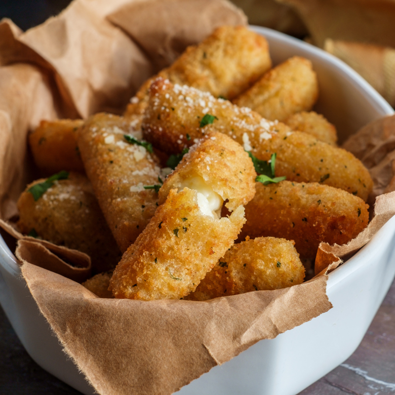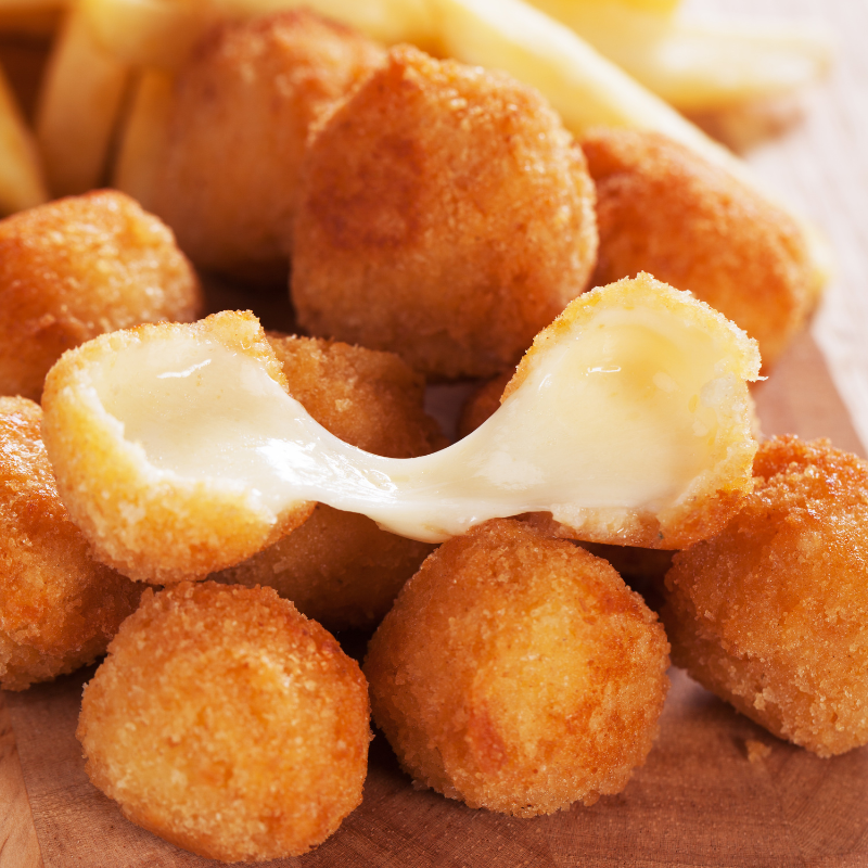 Giòn, thơm mùi phô mai, có vị mặn nhẹ, nhân phô mai tan chảy đậm đà