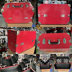 Thùng đựng đồ Make up - cốp trang điểm chuyên nghiệp simili đỏ vân da cá sấu 21cmx27cmx40cm Giangpkc