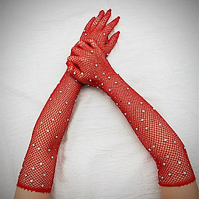 Găng tay sang chảnh màu đỏ dạng lưới đính đá lấp lánh cho Cô dâu và Dạ hội, đi tiệc, sự kiện, lễ hội, đạo cụ chụp ảnh, studio MS: 44839