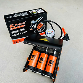 Bơm đạp chân xe đạp xe máy KAPUSI 3 ống xilanh bền đẹp - màu cam đen
