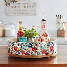 Khay sứ đế gỗ tròn xoay The Pioneer Woman Brilliant Blooms 12" Hàng chính hãng