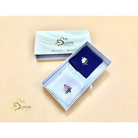 Handkerchief Hand Embroidery 100% Silk - SET 2 CÁI Khăn Tay Thêu SenSilk 35x35cm - Quà Tặng Handmade - Khăn Lụa Tơ Tằm Việt Nam
