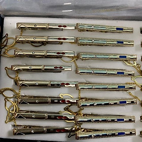 Cà vạt 6cm màu đen thắt sẵn kẻ đơn giản đính đá trắng sang trọng