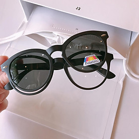 Set Kính Cận Râm Clip On 2in1 Mắt Tròn Đa Năng Màu Đen Cho Nam Và Nữ