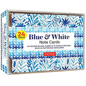 Blue & White Note Cards, 24 Blank Cards: 8 Unique Designs With 25 Patterned Envelopes
