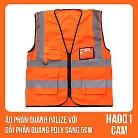 Áo phản quang Palize với dải Phản quang Poly sáng 5cm màu Cam - Mã HA001