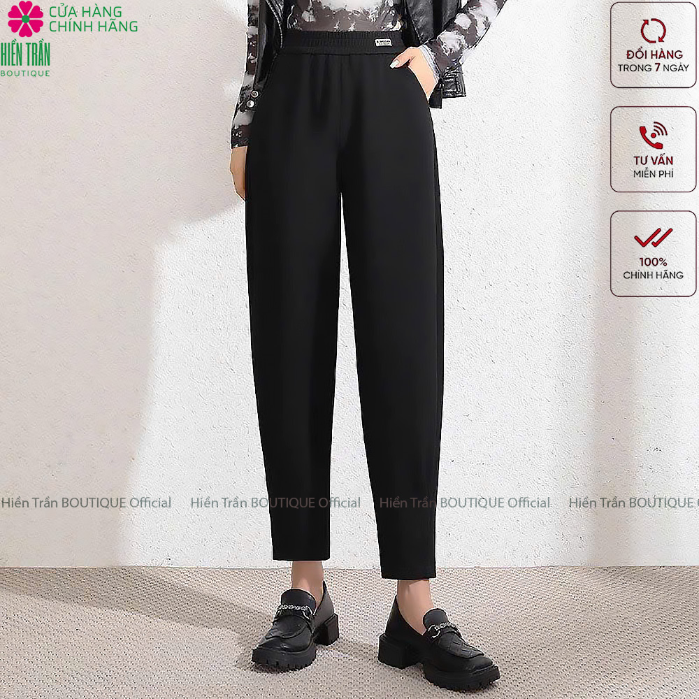 Quần baggy nữ Hiền Trần BOUTIQUE chất liệu mỳ nỉ mềm ấm đai chữ D mặc thu đông
