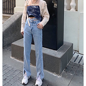 Quần Jeans ống rộng cạp cao cao cấp cho Nữ