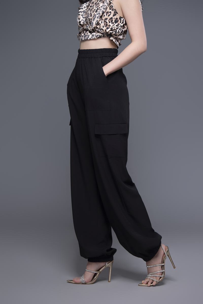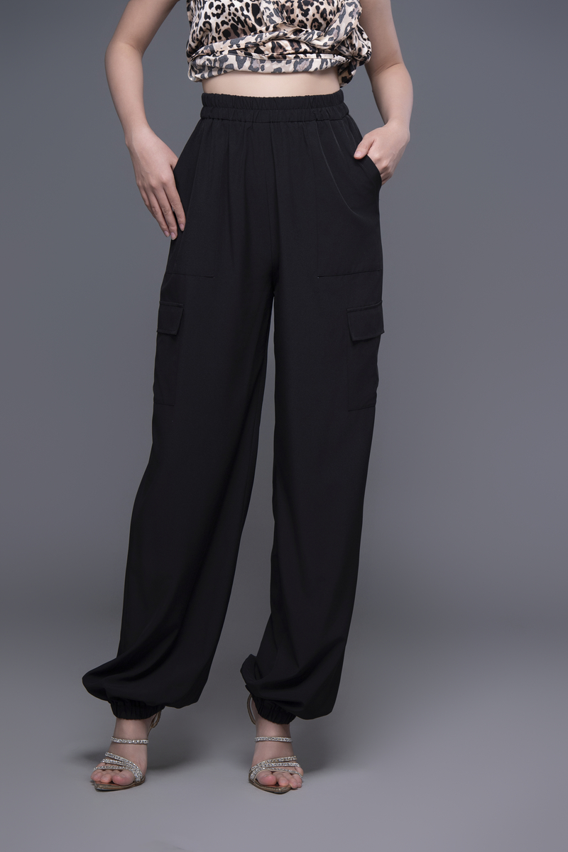 - Quần túi hộp màu đen, cạp chun co giãn, có phần chun thu ở ống quần giúp dễ dàng thu gọn, form dáng rộng rãi che khuyết điểm tốt, mang lại sự năng động và thoải mái cho người mặc.