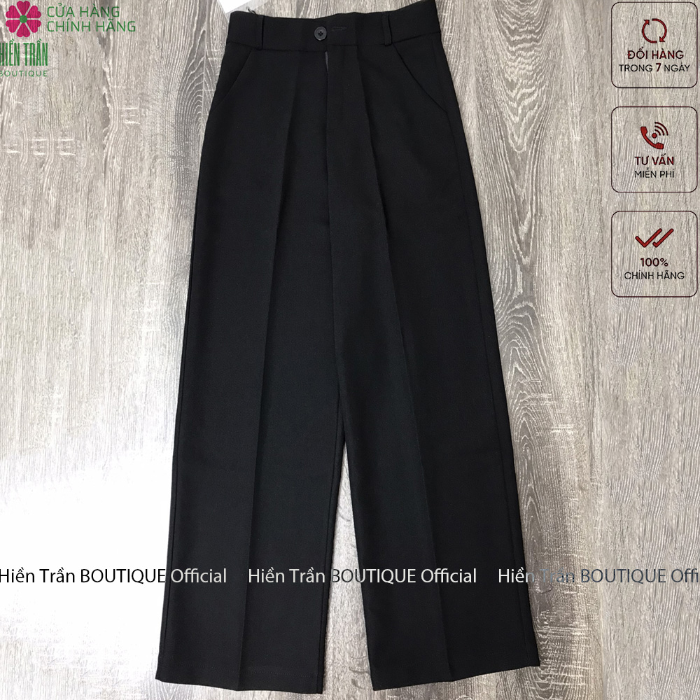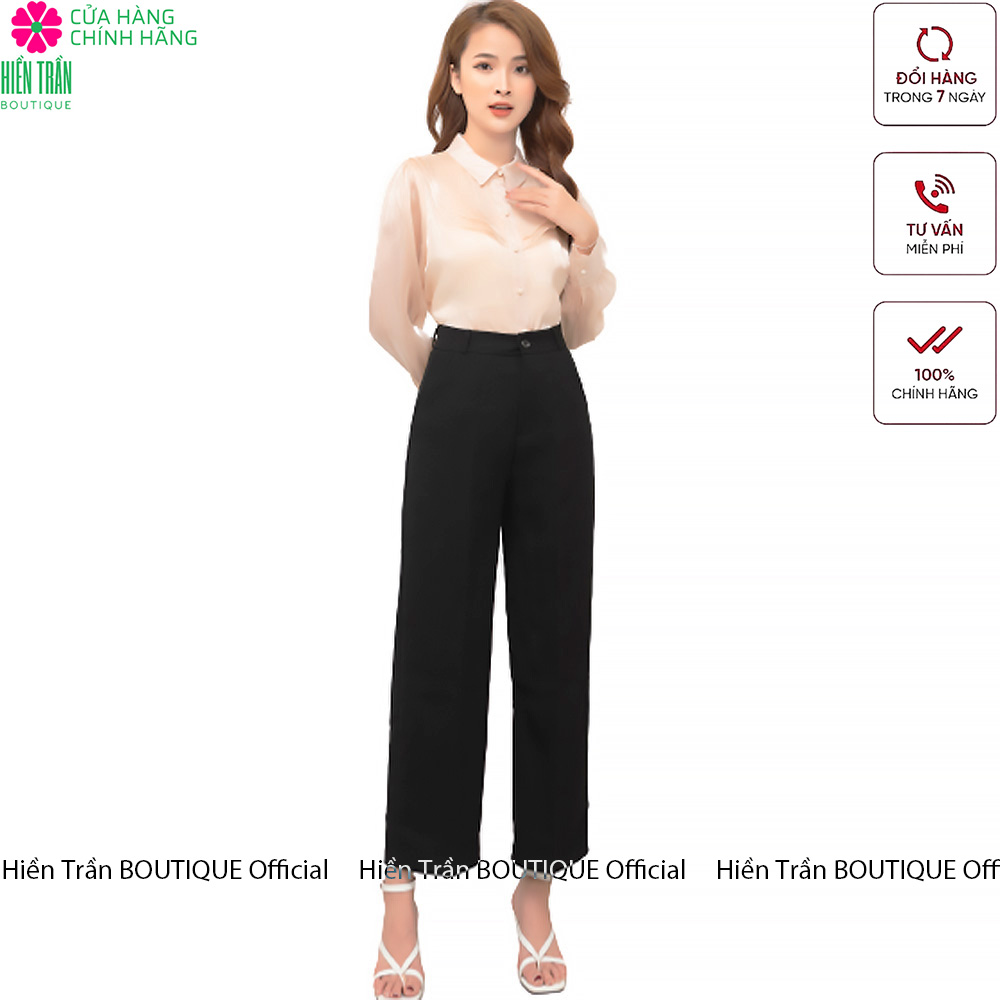 Quần ống rộng Hiền Trần BOUTIQUE lưng cạp cao baggy vải nữ dài suông loe culottes xuông màu đen