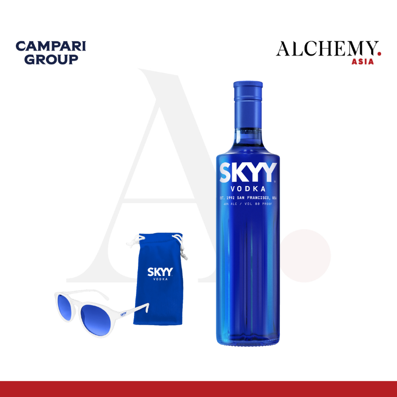 • Skyy Vodka mang trạng thái của tâm trí. Lấy cảm hứng từ bản chất tinh khiết, sạch sẽ của bờ biển San Francisco, SKYY mang đến một loại vodka & soda nhẹ hơn, có vị tươi mát hơn.