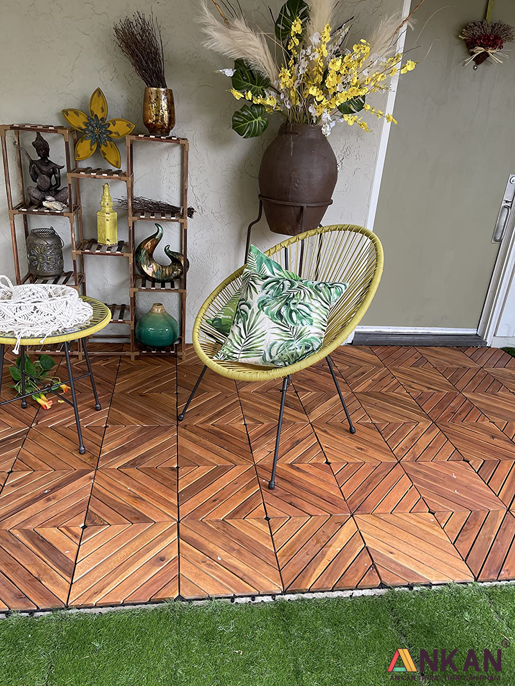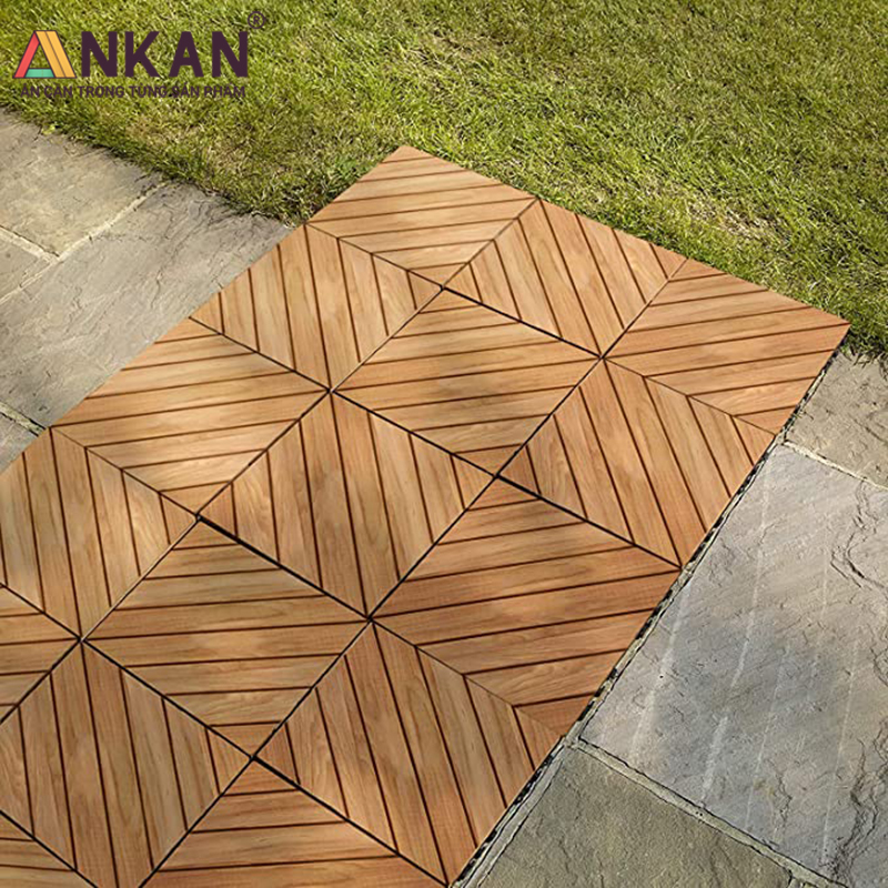 Sàn Gỗ Lót Ban Công Thương Hiệu ANKAN Màu Nâu Vàng Nan Hoa, Vỉ Gỗ Lót Sàn Dùng Để Lót Sân Vườn, Nhà Tắm, Phòng Spa, Có Phủ PU, Siêu Bền, Chống Thấm, Chống Trơn Trượt, Tiêu Chuẩn Xuất Khẩu (1 Vỉ)