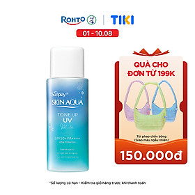 Kem chống nắng nâng tông Skin Aqua Tone up Blue cho da vàng có khuyết điểm đỏ, dạng sữa Sunplay Skin Aqua Tone Up UV Milk Blue SPF 50+ PA++++ 50g