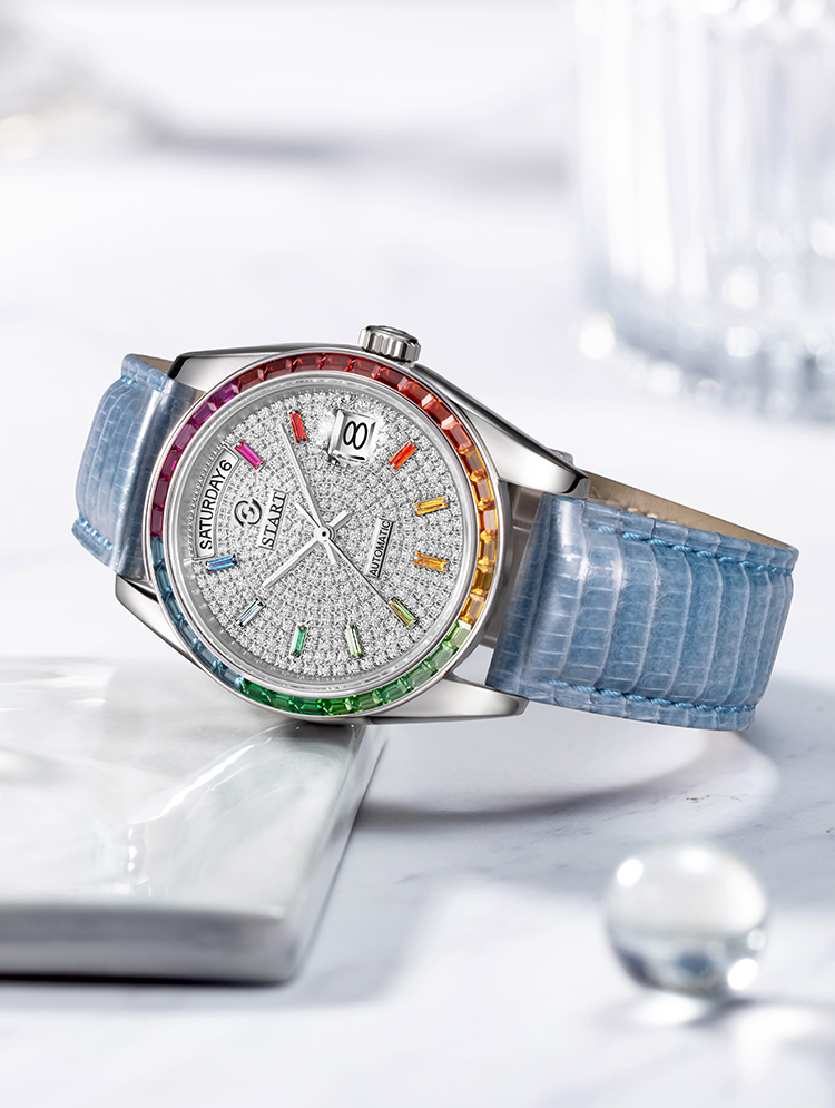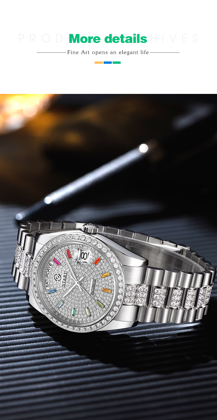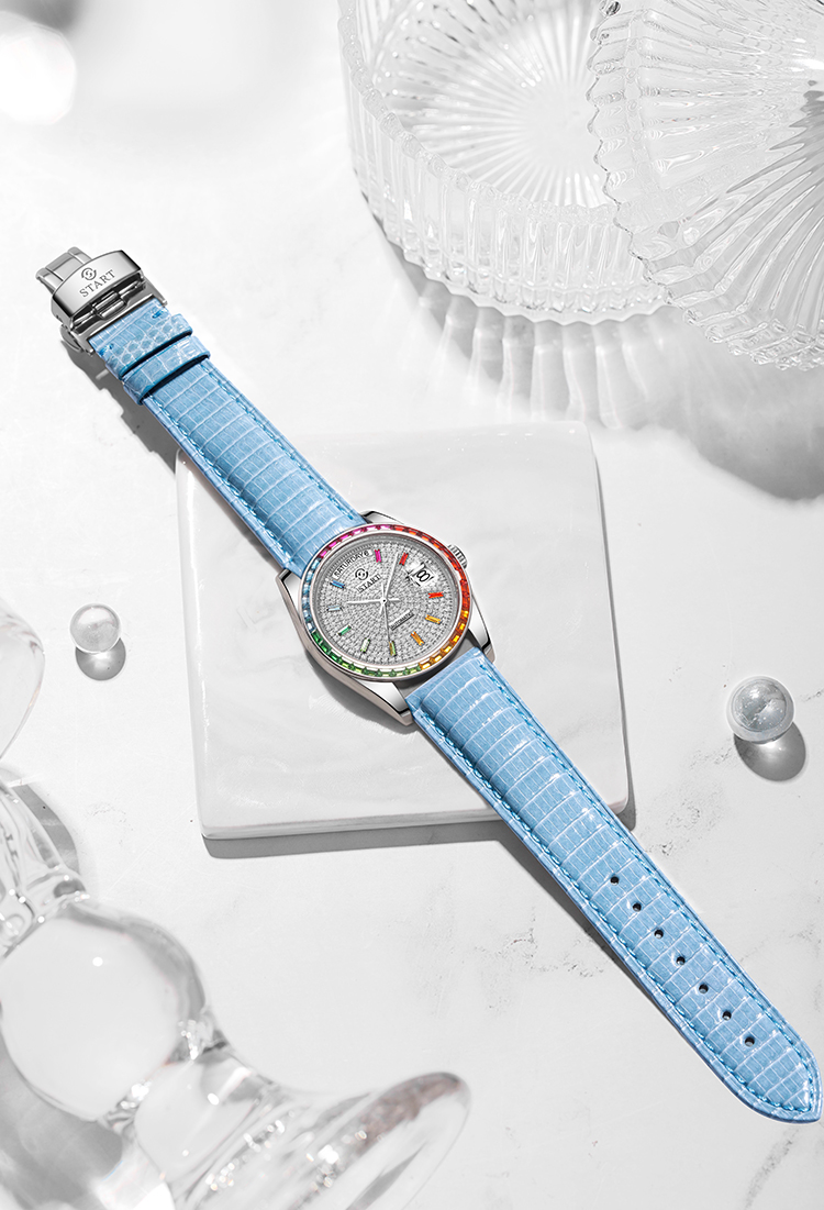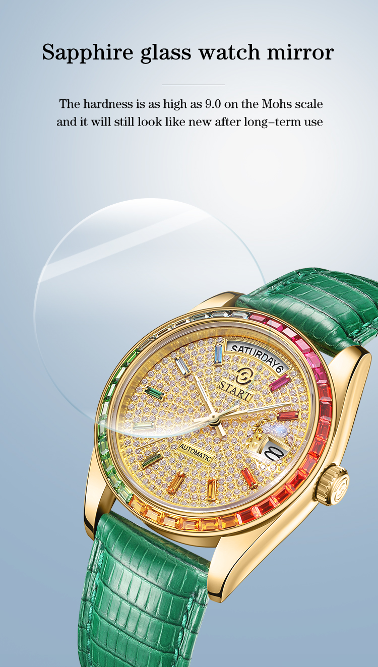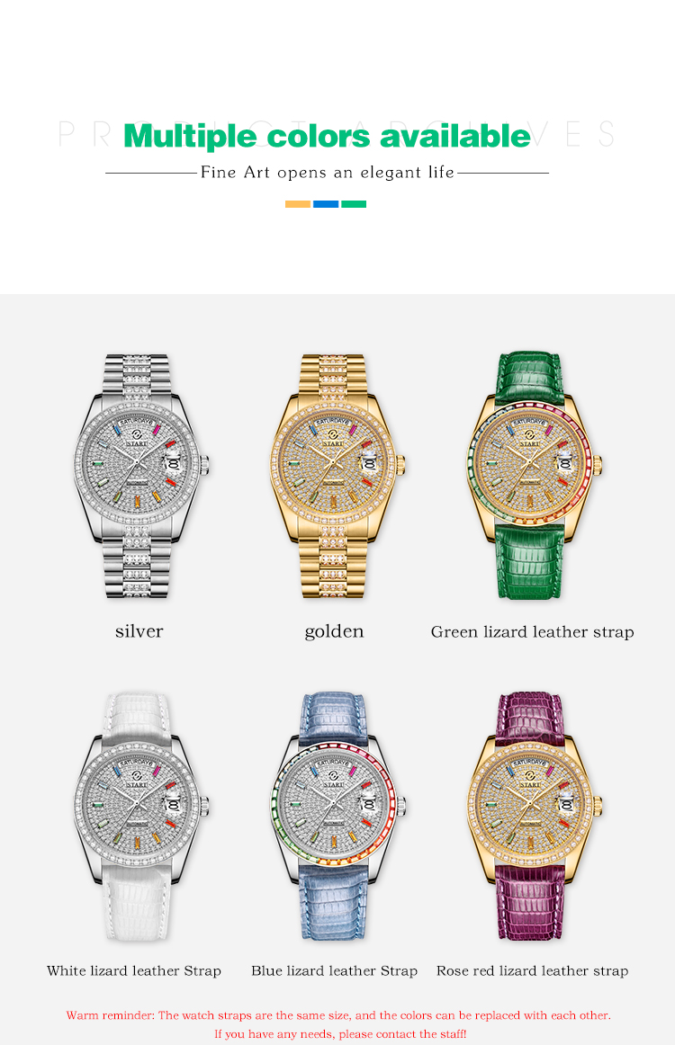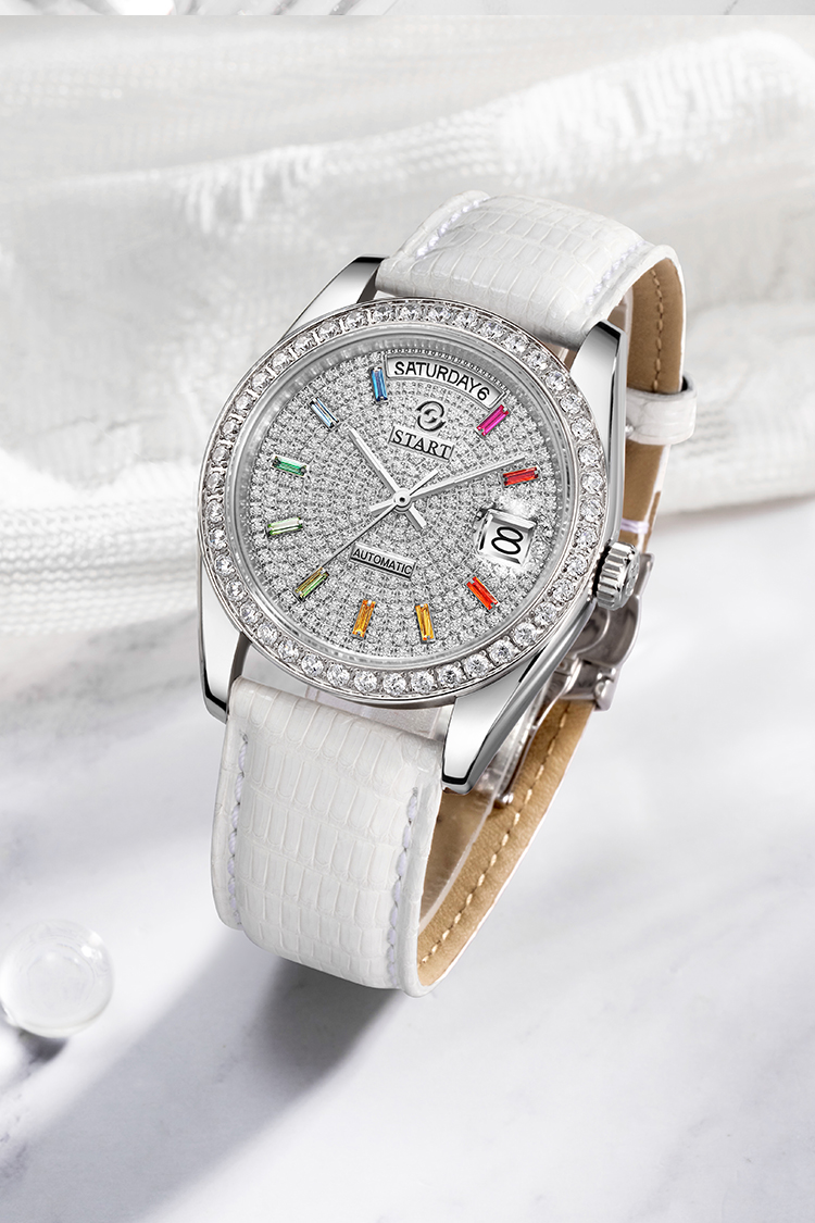 【sản phẩm mới】Đồng hồ kim cương cầu vồng Đồng hồ nam nữ Đồng hồ cơ tự động Kích thước unisex 36MM dây da thằn lằn chống nước chức năng hiển thị thứ ngày