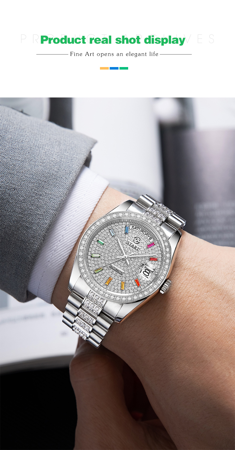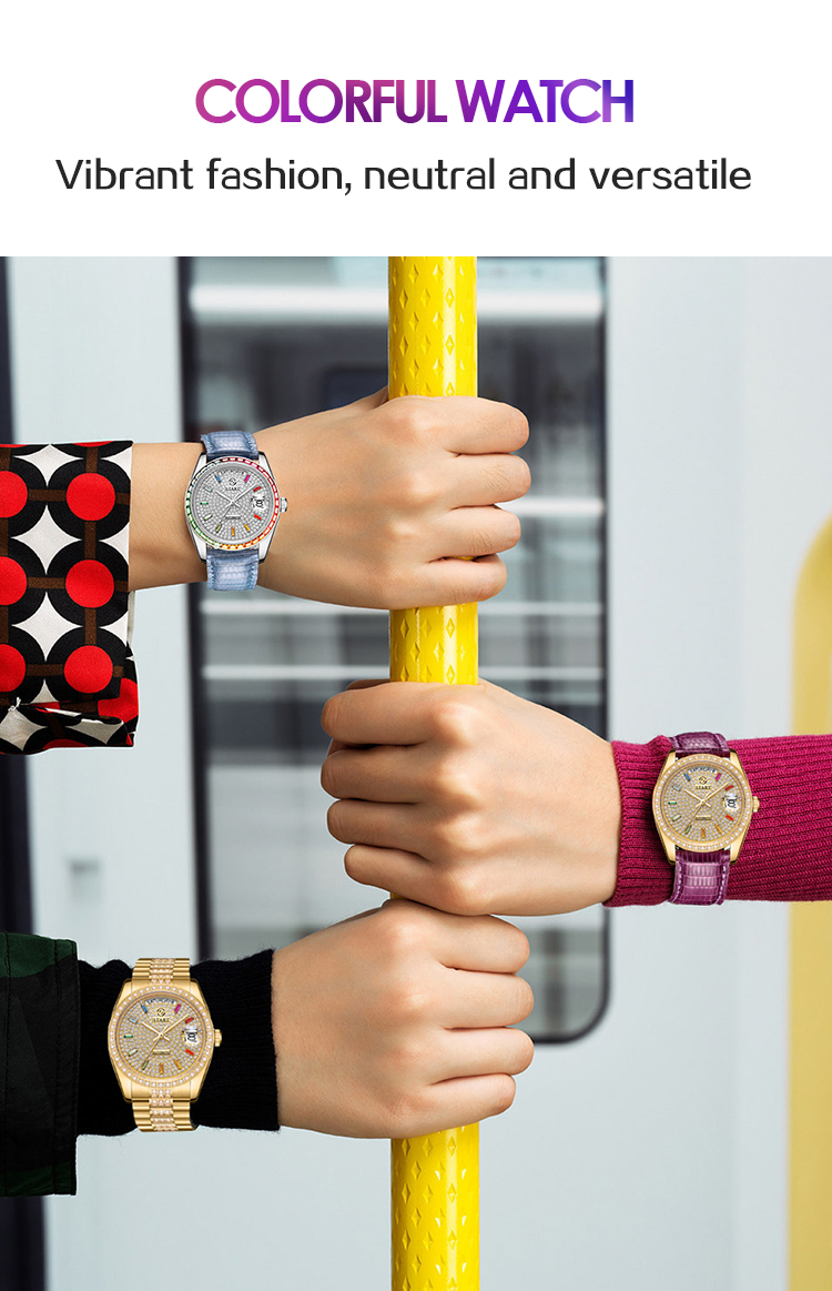 Đặc điểm: Mặt số nạm kim cương, kim cương cầu vồng,ngày,Tuần