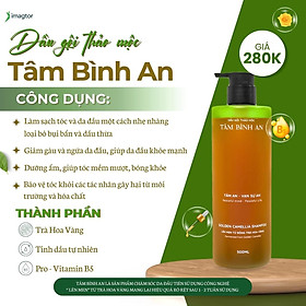 Dầu Gội Tâm Bình An giữ tron tinh túy từ các nguyên liệu thiên, cung cấp dưỡng chất từ dược liệu quý Trà Hoa Vàng - 500ml