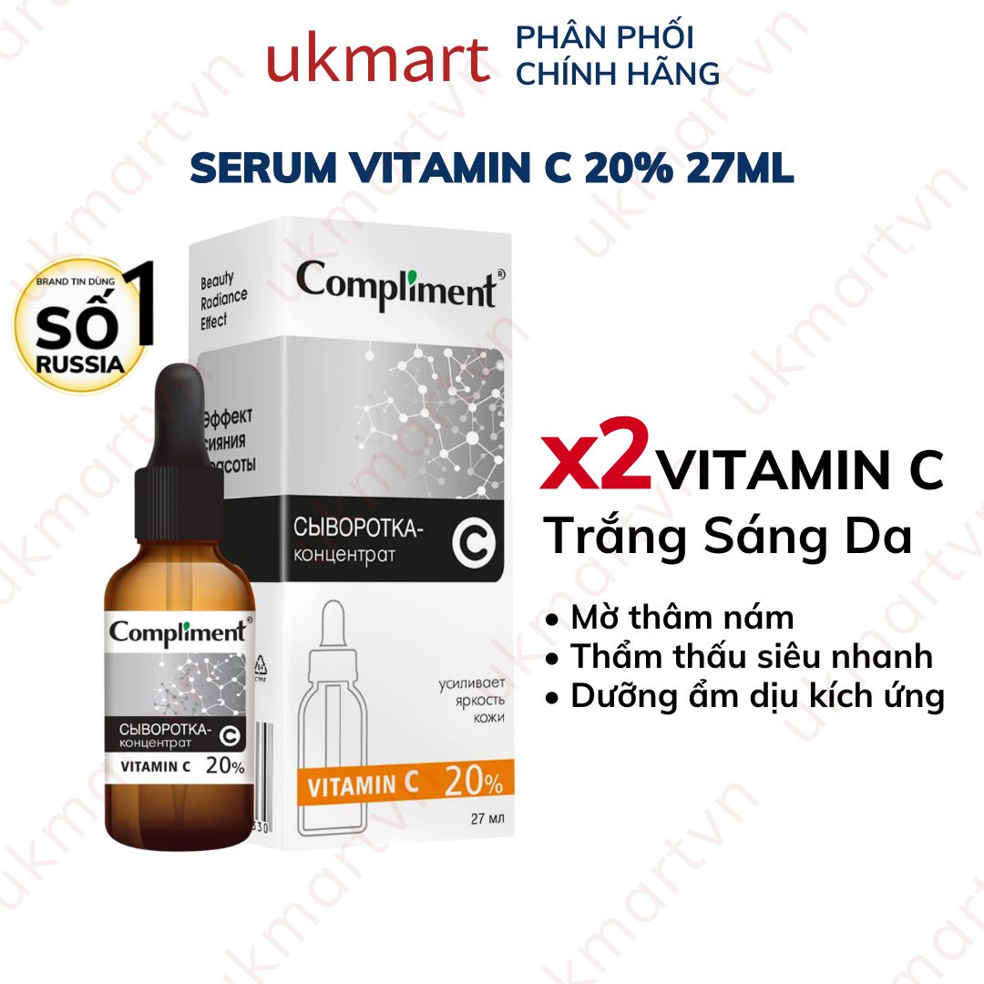 Serum Compliment 2% BHA Salicylic Acid Hyaluronic Acid B5 5% Vitamin C 20% Làm Sạch Da, Giảm Mụn Trắng Da Căng Bóng 27ml