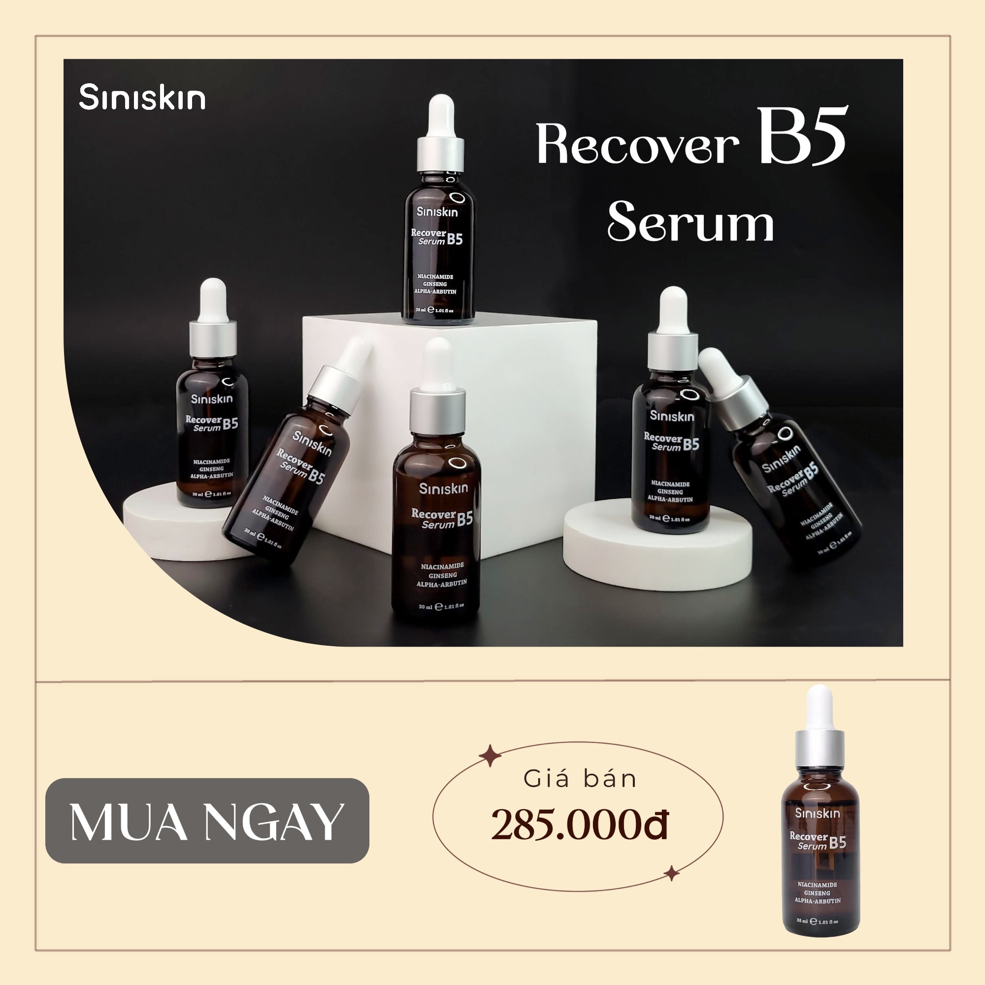Chúng tôi vui mừng thông báo ra mắt sản phẩm mới RECOVER B5 SERUM từ Siniskin, một giải pháp đột phá trong chăm sóc da. Sản phẩm này chứa các thành phần cao cấp như Panthenol (Vitamin B5), Niacinamide (Vitamin B3), chiết xuất rễ nhân sâm, Alpha-Arbutin, Gluconobacter/Honey Ferment Filtrate và Hyaluronic Acid, giúp phục hồi da hư tổn, dưỡng ẩm sâu, làm sáng da và giảm thâm nám.