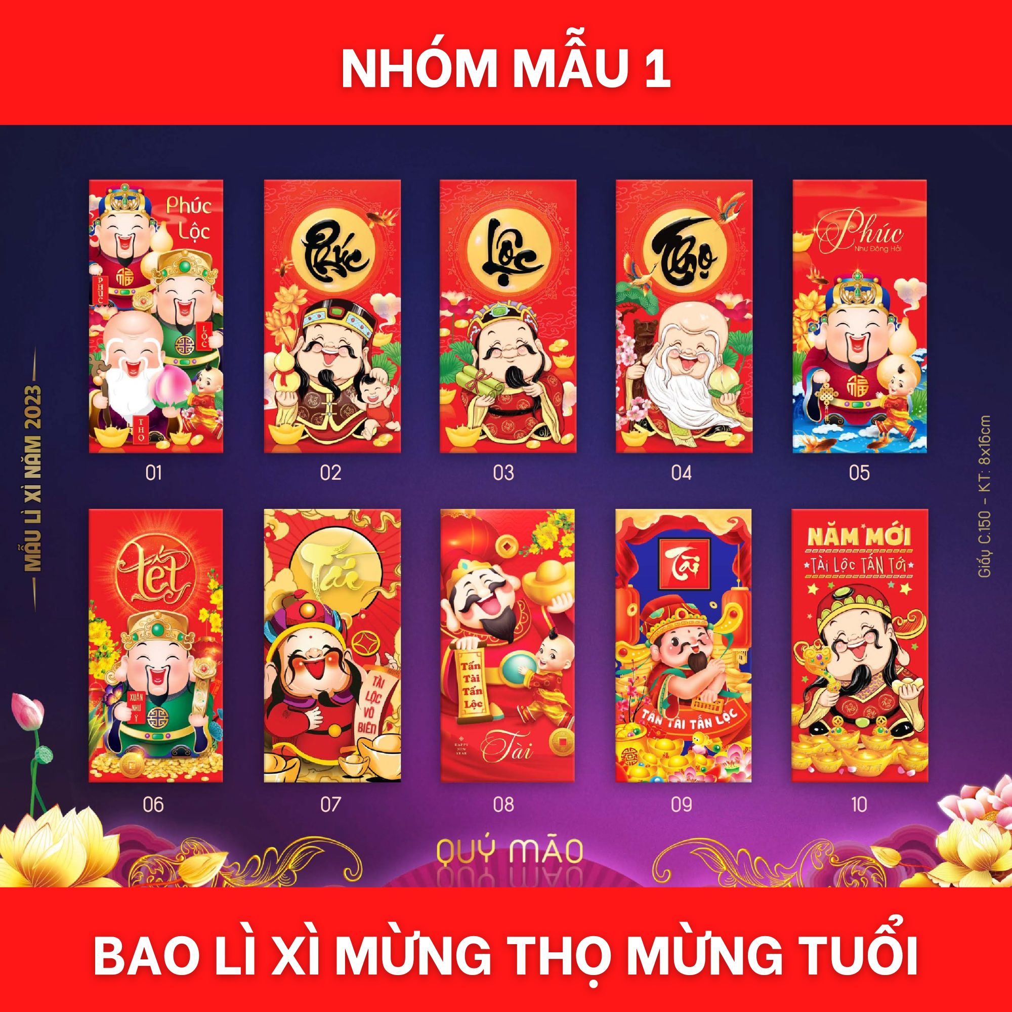 SET 50/10 Bao lì xì Mừng Xuân Mừng tuổi chúc Năm mới mẫu ngẫu nhiên