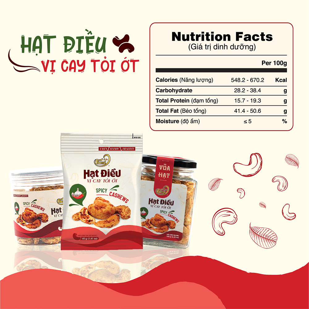 Nutrition facts Hạt Điều Tỏi Ớt Famniuts