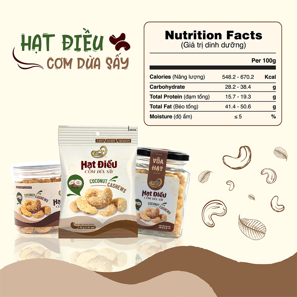 Nutrition facts Hạt Điều Cơm Dừa Sấy Famniuts