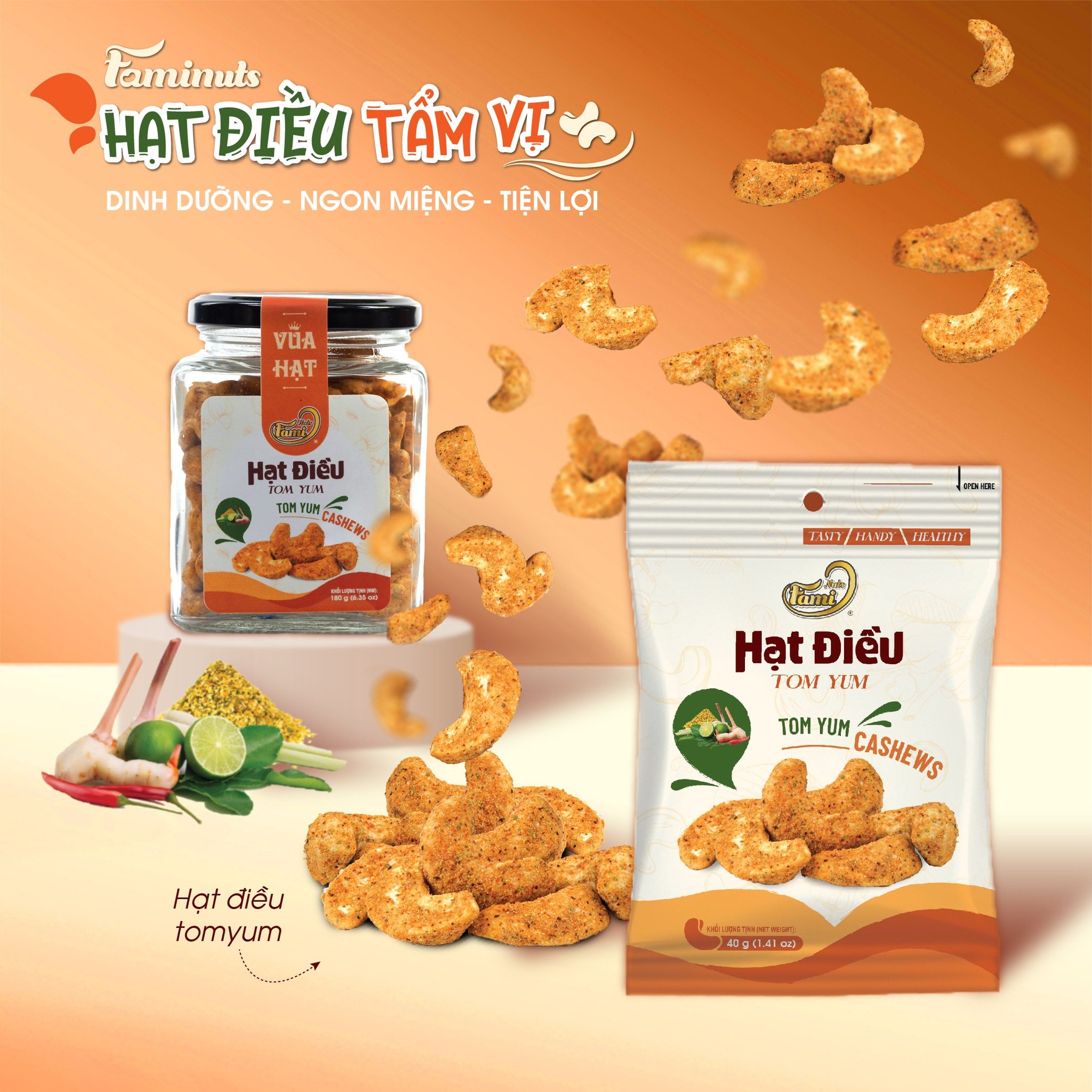 THÔNG TIN SẢN PHẨM SNACK HẠT ĐIỀU TẨM VỊ FAMINUTS