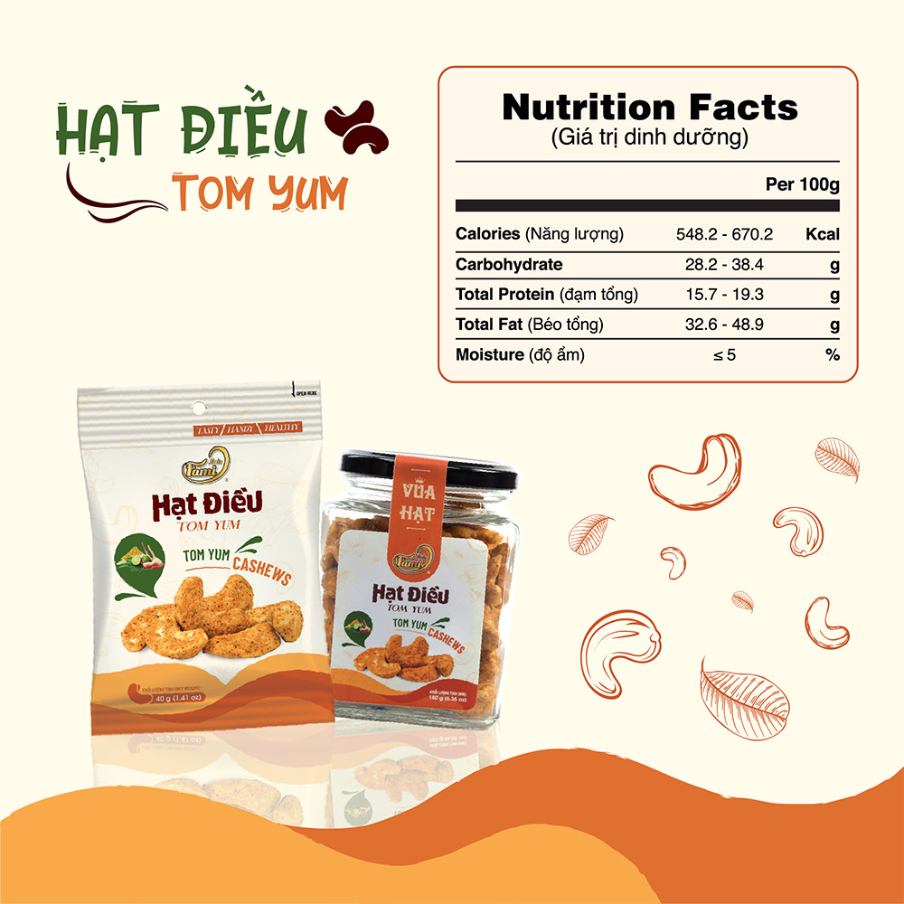 Nutrition facts Hạt Điều Tomyum Famniuts