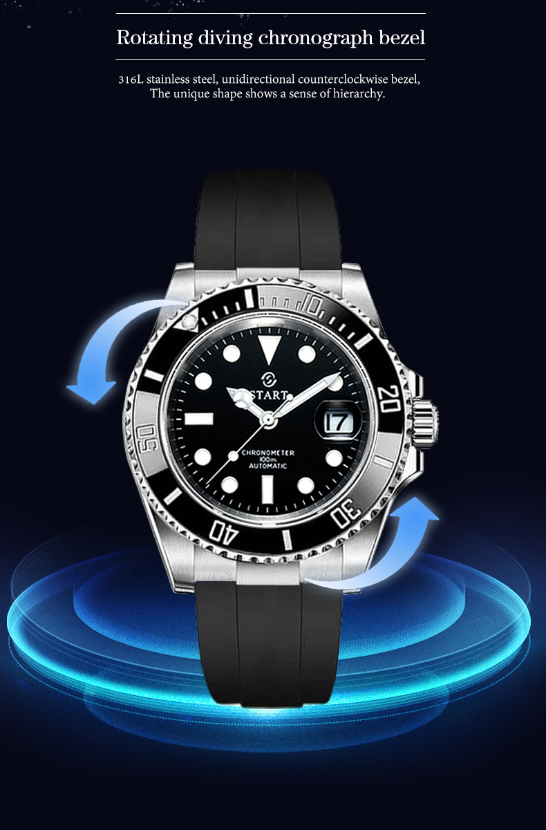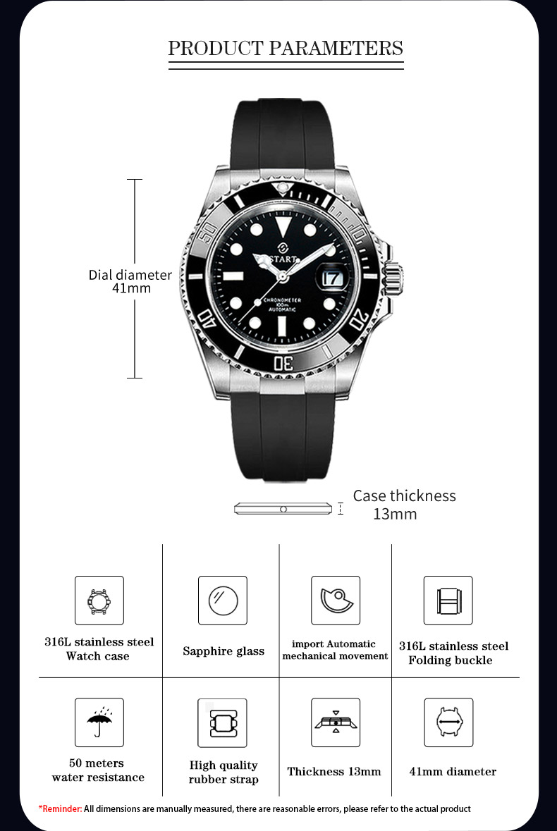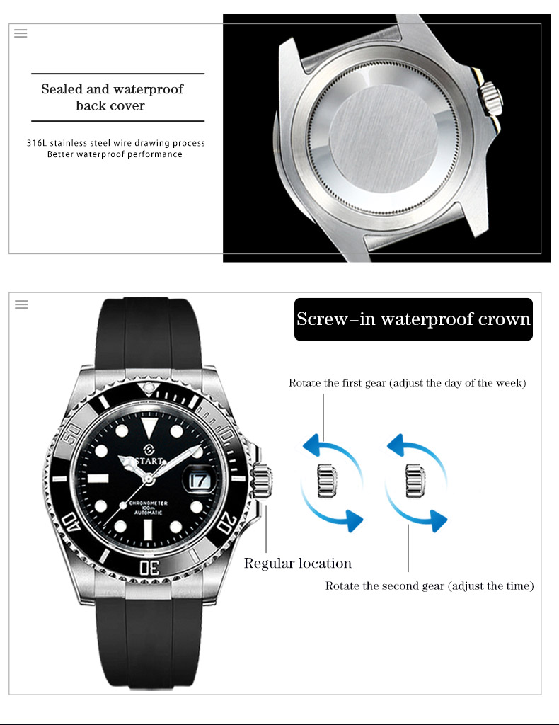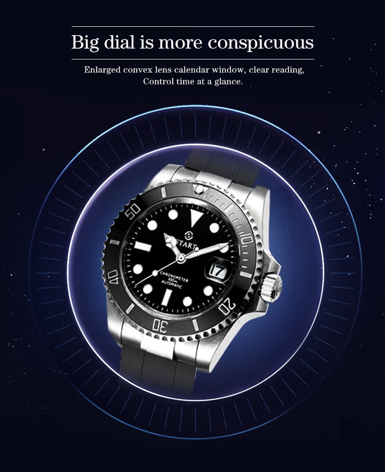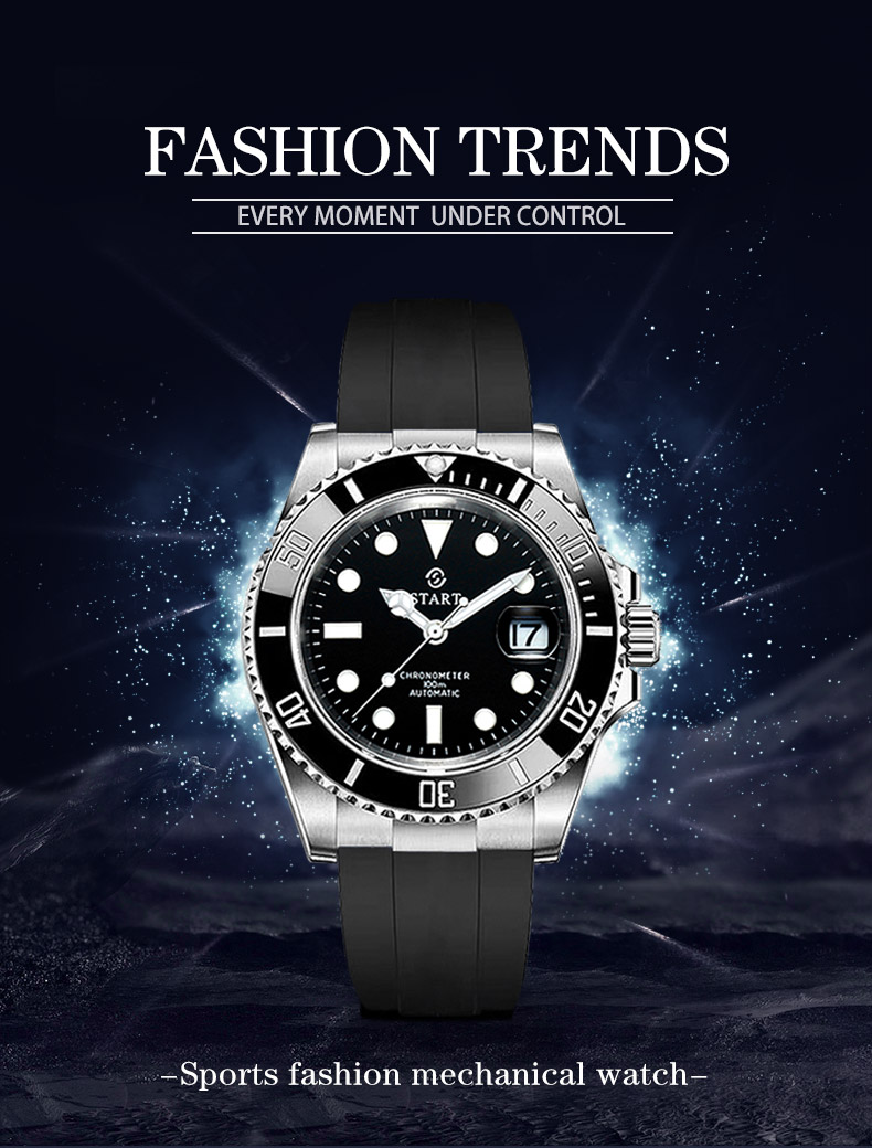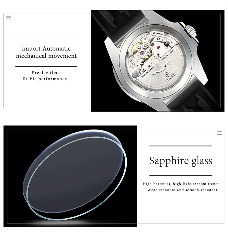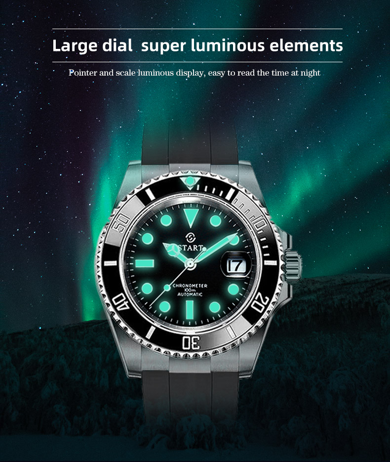【START】Đồng hồ nam đồng hồ lặn chống nước dạ quang đồng hồ cơ tự động chức năng ngày dây đeo khóa gấp