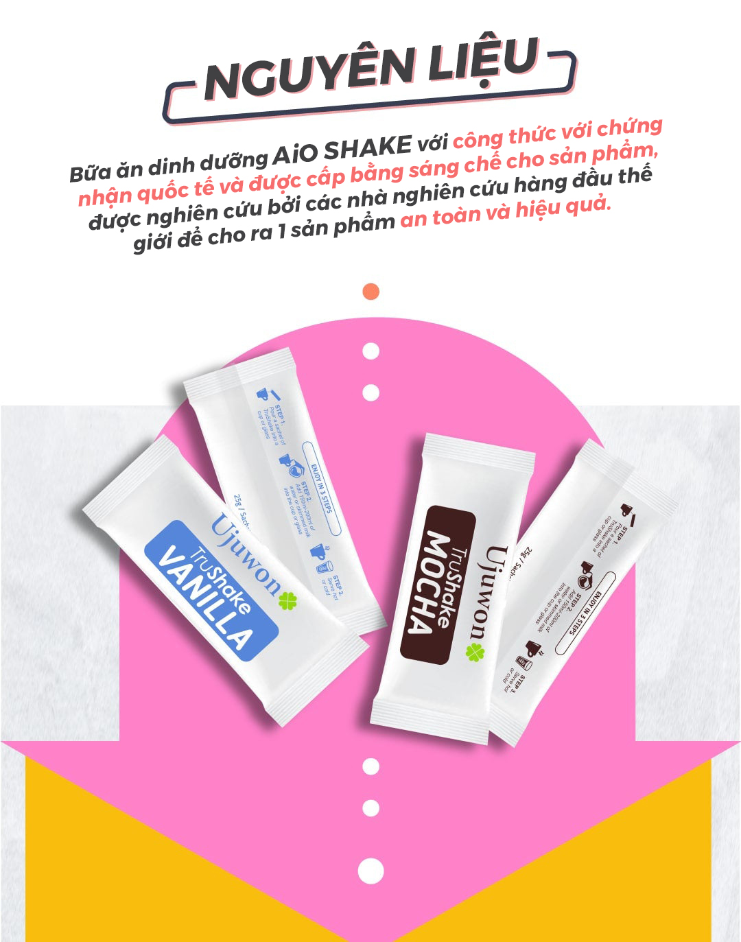 Sữa Dinh Dưỡng Protein Giảm Cân Không Đường Ujuwon AiO Meal Shake được pha chế với các thành phần được cấp bằng sáng chế và thương hiệu quốc tế đã được nghiên cứu khoa học chứng minh là an toàn và hiệu quả khi sử dụng.