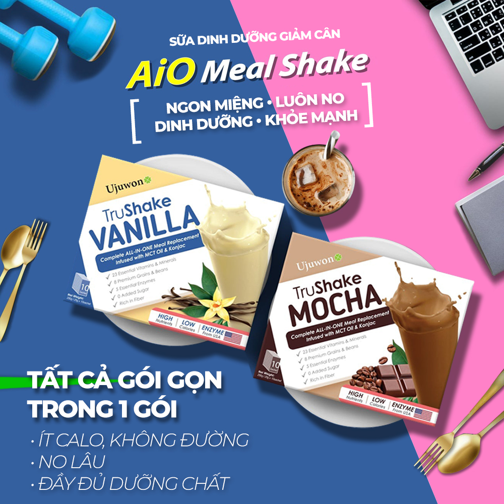 [VOUCHER 80K] Sữa Dinh Dưỡng Protein Giảm Cân Không Đường Ujuwon AiO Meal Shake Hương Cà Phê Mocha Chocolate Thơm Ngon (10 gói/hộp)