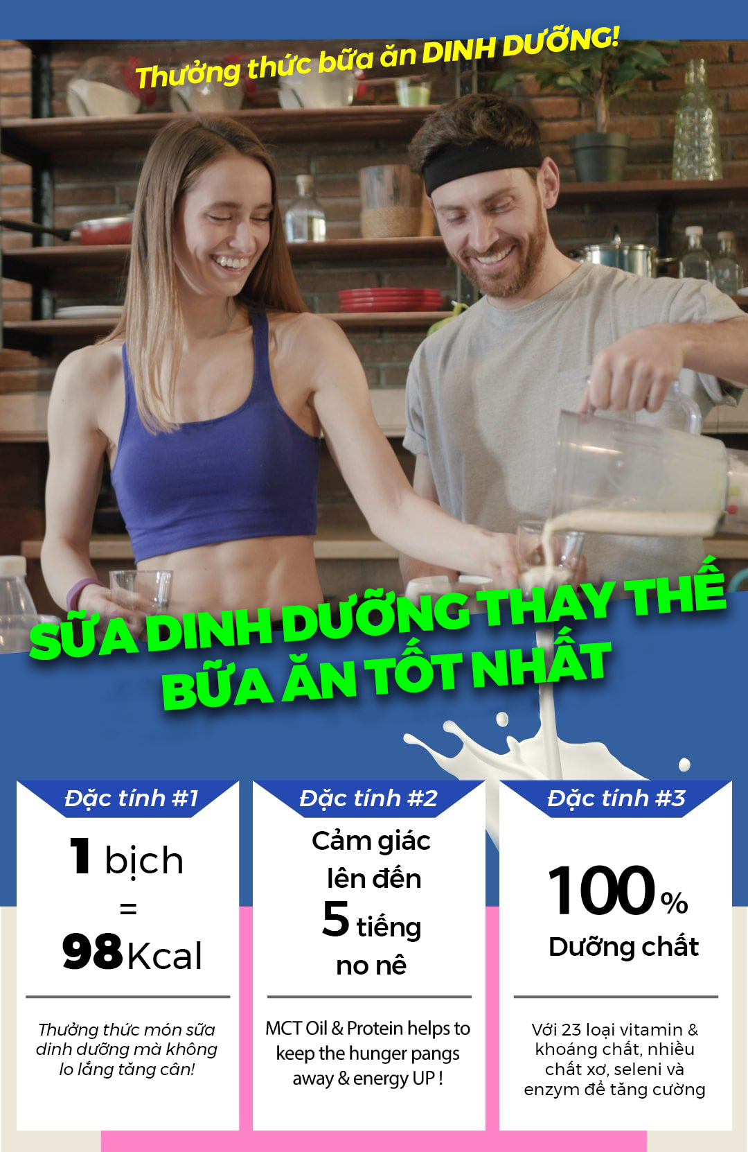 Là một loại sữa thay thế bữa ăn có hương vị tuyệt vời với đầy đủ các chất dinh dưỡng kèm với đó là các lợi ích tăng cường sức khỏe. Là sự kết hợp của dầu MCT và Konjac. Giàu chất dinh dưỡng, ít calo và nhiều chất xơ.