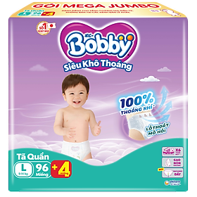 [TẶNG KÈM 4 MIẾNG] Tã quần Bobby Siêu Khô Thoáng - 100% Thoáng Khí Mega Jumbo - L96