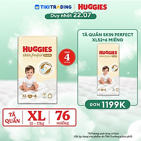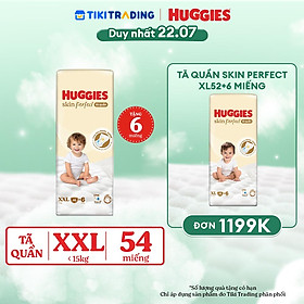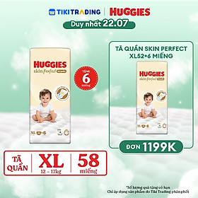 [Gift] Tã quần Huggies Skin Perfect XL Super Jumbo 52+6 miếng với 2 vùng thấm giảm kích ứng da - Mẫu ngẫu nhiên