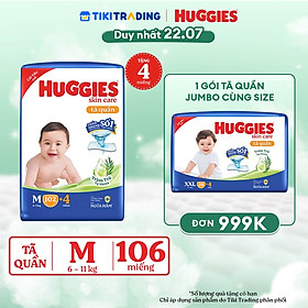 Tã/bỉm quần Huggies Skin Care Mega Jumbo M102+4 miếng với tràm trà dịu da
