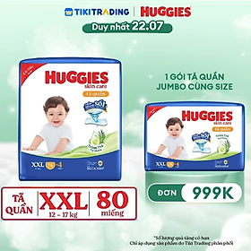 Tã/bỉm quần Huggies Skin Care Mega Jumbo XXL76+4 miếng với tràm trà dịu da