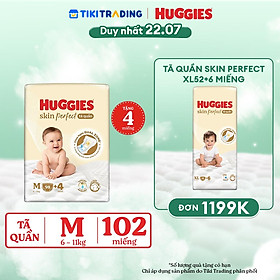 Tã quần Huggies Skin Perfect Mega Jumbo M98+4 miếng với 2 vùng thấm giảm kích ứng da
