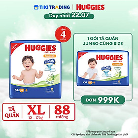 Tã/bỉm quần Huggies Skin Care Mega Jumbo XL84+4 miếng với tràm trà dịu da