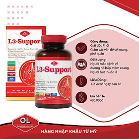 Viên Uống Bổ Phổi L3 Support Olympian Labs Giúp Phục Hồi Chức Năng Phổi, Xoang & Tăng Đề Hệ Kháng Hô Hấp (Hộp 30 Viên)