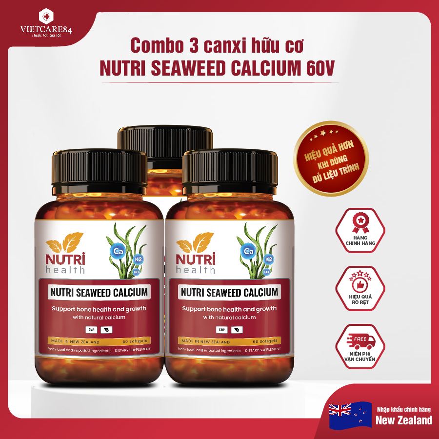 Bộ 3 Hộp Viên Uống Canxi hữu cơ nhập khẩu chính hãng Nutri Seaweed Calcium 60 viên