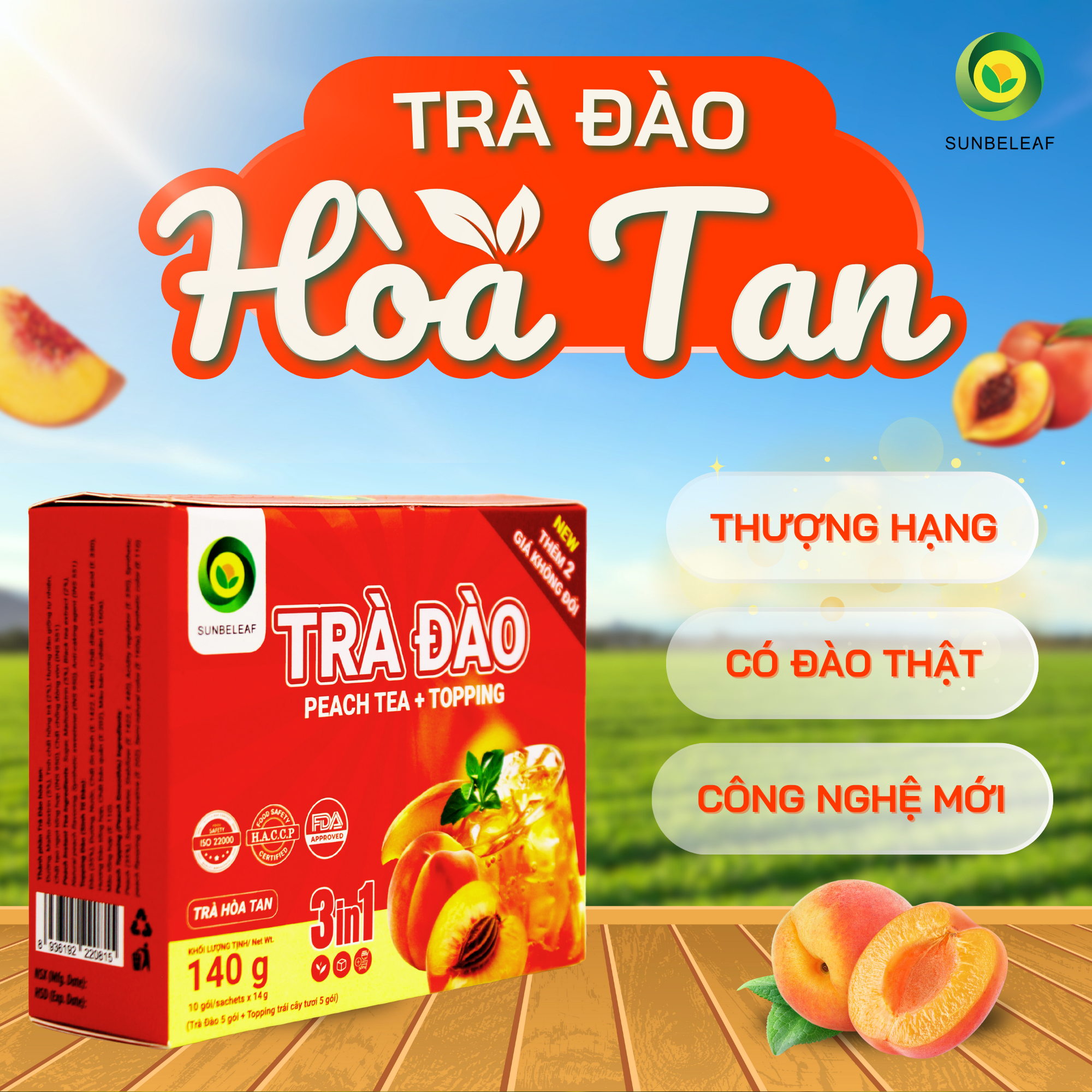 [TẶNG TOPPING] Trà Đào hòa tan Sunbeleaf, có đào thật, trà hoa quả tươi ngon, thanh mát, hộp 10 gói