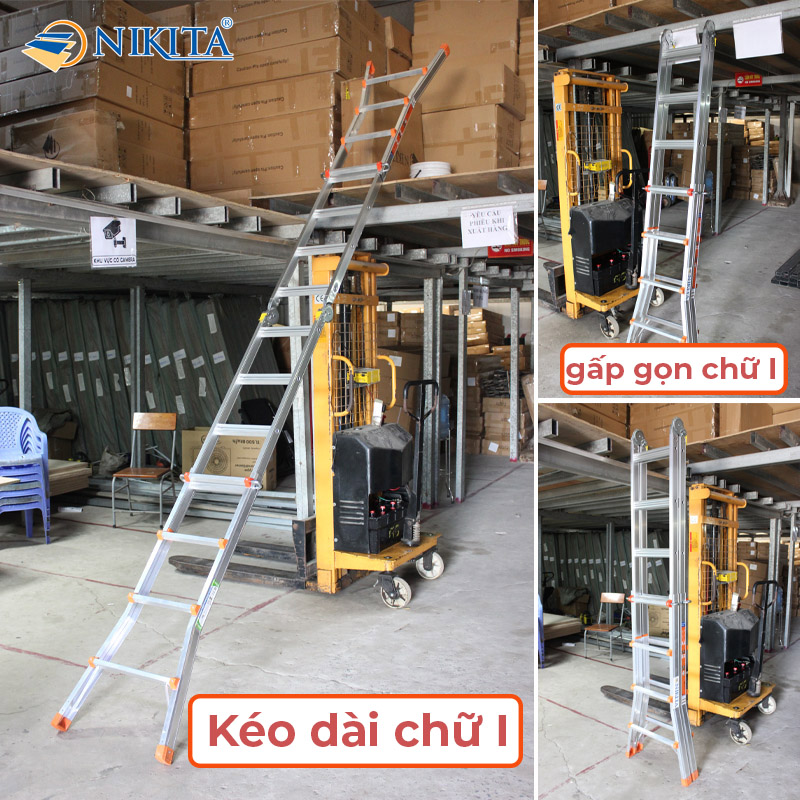 Thang nhôm trượt đa năng, khóa tự động, nhiều tư thế sử dụng, Hàng chính hãng NIKITA