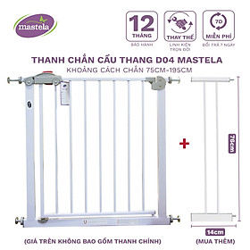 Thanh chắn cửa, chắn cầu thang chính hãng Mastela D04 bảo vệ an toàn cho bé, Không cần khoan tường, có thể thanh mở rộng