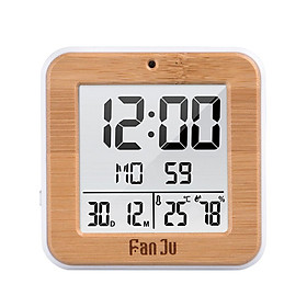 Đồng hồ kỹ thuật số FanJu có chức năng hiển thị nhiệt độ, mặt gỗ thời trang, đèn nền màn hình LCD với phông chữ lớn dễ đọc