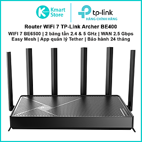 Router WIFI 7 TP-Link BE400 | WIFI 7 BE6500 2 băng tần 2.4 & 5.0 GHz | 6 anten | EasyMesh | App Tether | Bảo hành 2 năm | Hàng Chính Hãng
