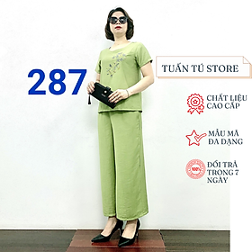 Thời trang trung niên Bộ phối Áo đũi xước thêu hoa tinh xảo và quần đũi lụa mềm mịn đủ size từ 45 tới 65kg - Tuấn Tú Store 68