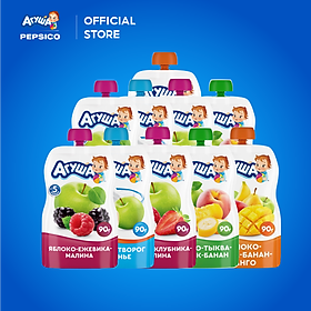 Thùng 10 Gói Trái cây nghiền vị táo, đào, chuối và bí ngô Agusha 90g/gói dành cho bé từ 6 tháng trở lên