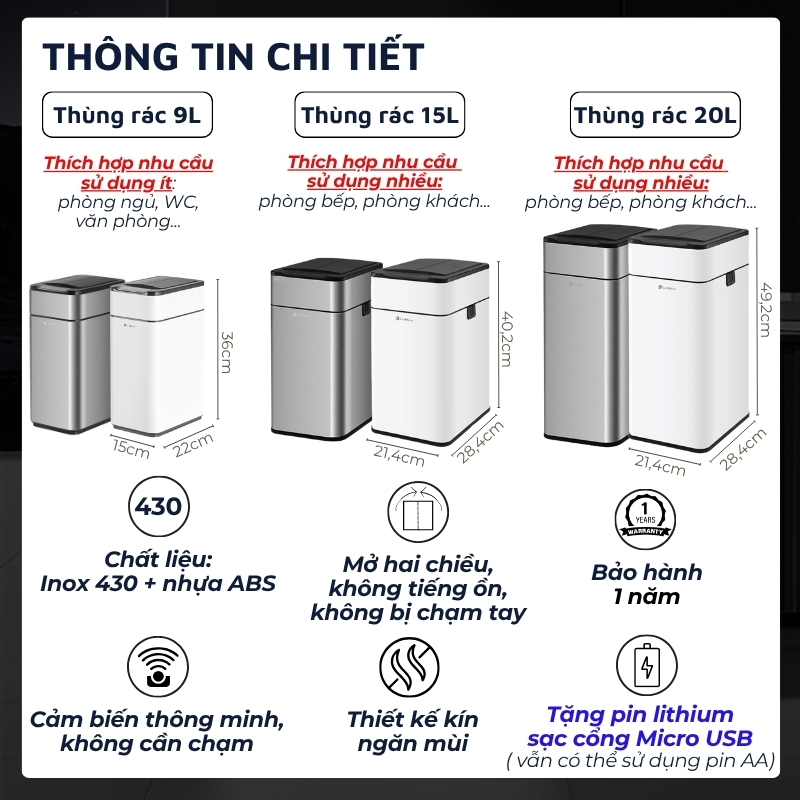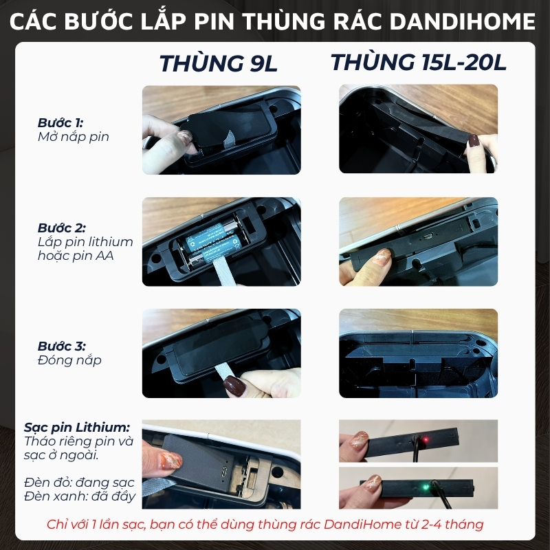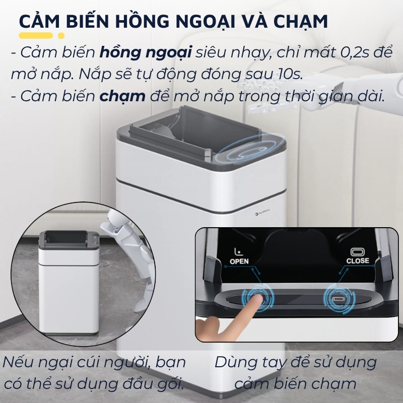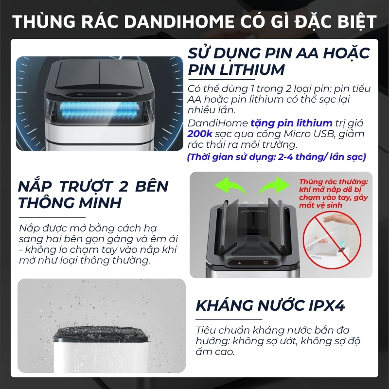 Thùng rác thông minh cảm ứng tự động đóng mở DandiHome - Tặng pin sạc Micro usb